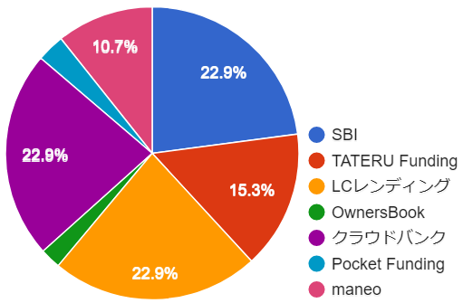 上場系4社で6割、大手のクラウドバンクを加えると8割超です。良い感じになってきました。