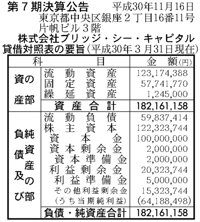 - 2018年3月22日:1億円に増資(ブリッジ・シー・ホールディングスを引受先とする株主割当増資)