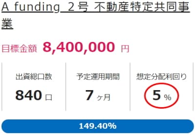 今回の案件、利回り5%と表示されていますが、実はこれ配当利回りです。