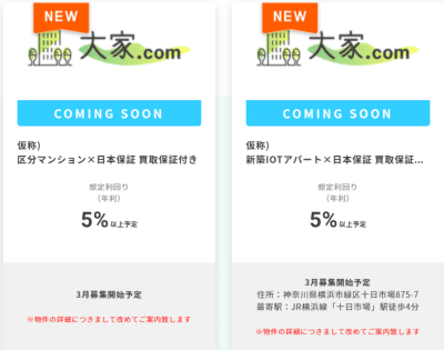 3月の大家どっとこむは2案件が募集されます。