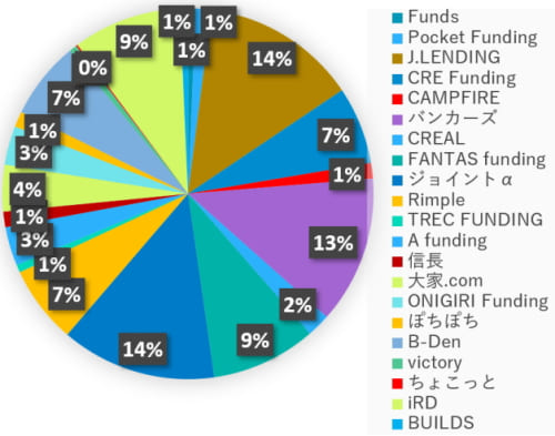ただ、新規業者が不動産クラファンばかりなので、じわじわと不動産クラファンの比率が上がるでしょう。