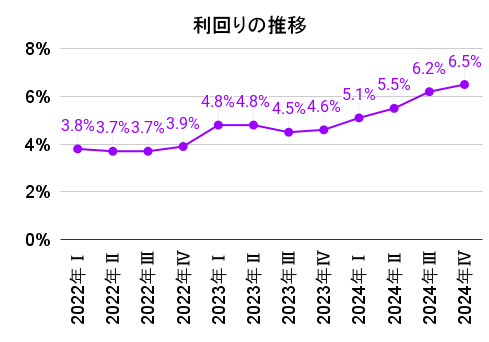 2024年の平均利回りは前年比1%前後と大幅に上昇しました。