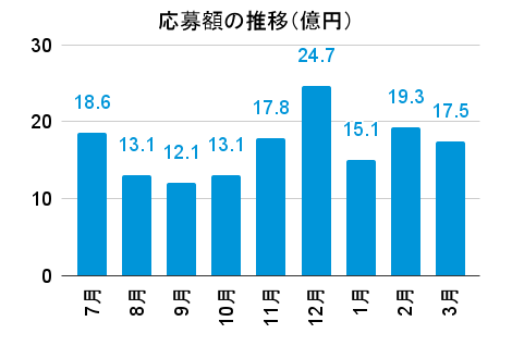 昨年8月から9月、10月と利回りは下がったものの、運用期間を短くしたことで応募額を維持しています。
